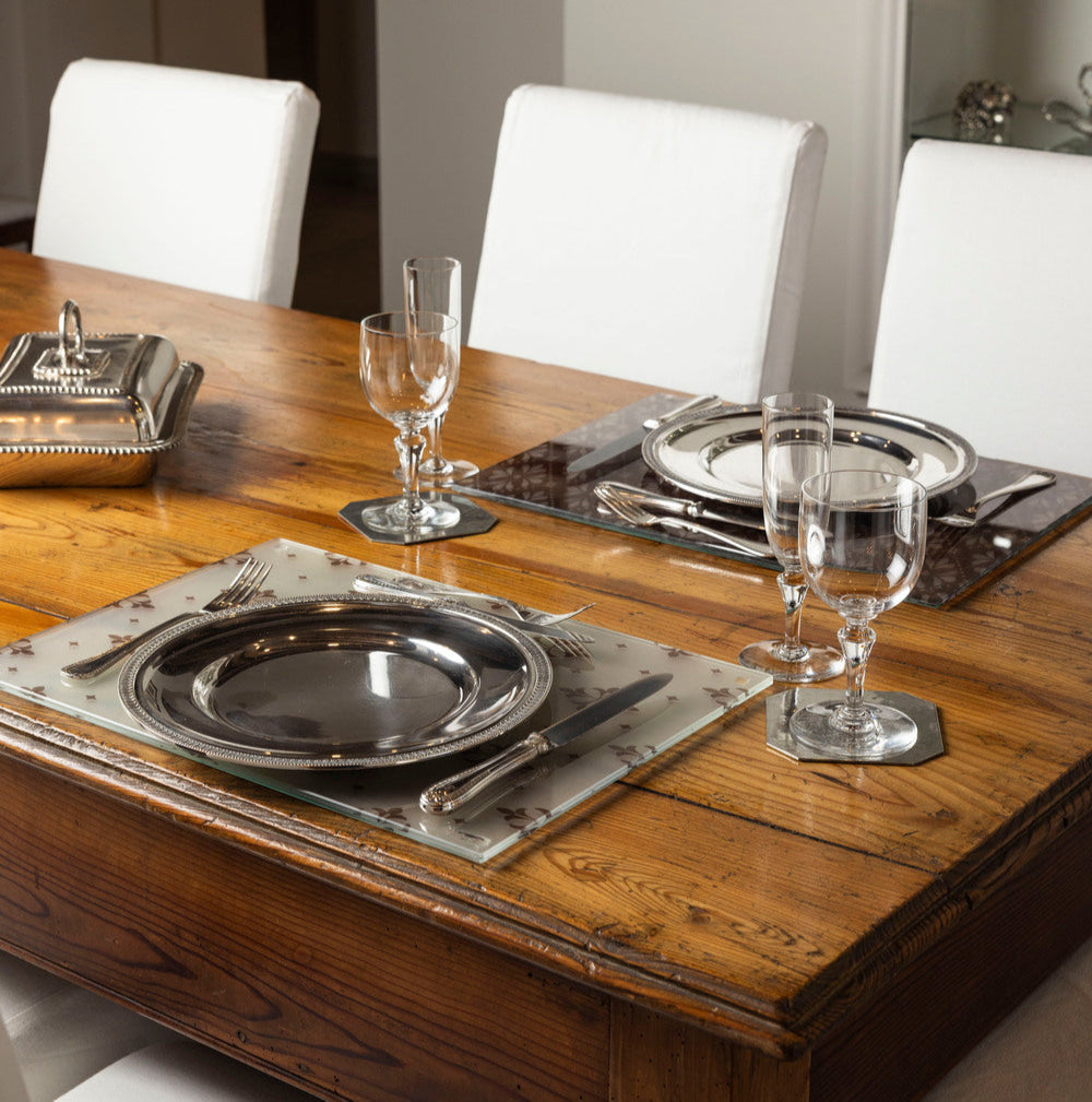 Le tovagliette in vetro uniscono stile ed eleganza, donando luminosità alla tavola. Facili da pulire e con design raffinati, rendono ogni pasto un momento sofisticato.